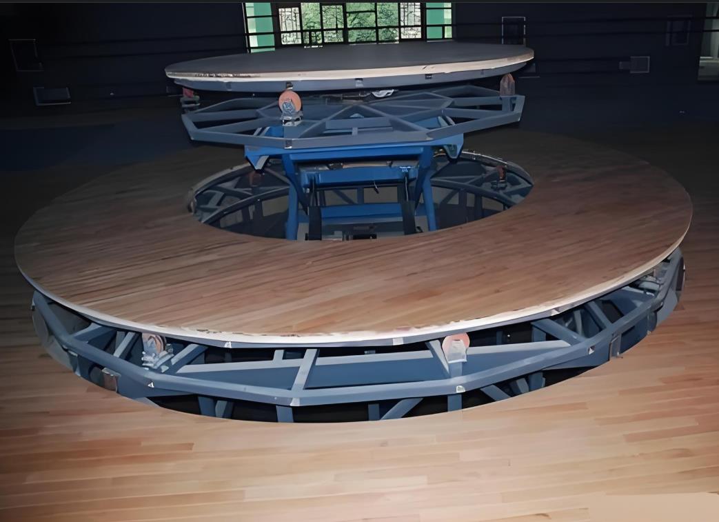 液压升降舞台可实现双层台面的升降。可根据需要亦可拼成阶梯形、多景、多层次阶梯,组成升降台群,能在行程范围内组成不同的台阶,丰富舞台多功能效果伸缩舞台适应于、会堂、影剧院、多功能厅、演播厅、文化体育场馆等的设备,伸缩舞台采用有效的导向系统,使伸缩台在平移过程中与固定台的间隙小,运行平稳、速度无级变化、同步装置、电动采用低速大扭距驱动装置,伸缩过程中平行、自如、伸缩到位、可自动实现补平旋转舞台有升降、旋转、倾斜等多种功能,控制采用自锁、互锁、行程开关、机械限位、液压防爆等保护措施。使舞台安全、平稳可靠,广泛应用于会堂、影剧院、多功能厅、演播厅、文化体育场馆、酒店等文化娱乐场所。